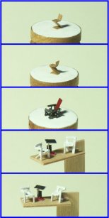 the Zigzag Chair, the Red-Blue Chair, the white Steltman Chair in left and right hand versions, and the End Table. All in 1/144 scale, so they are each only a few millimetres tall.