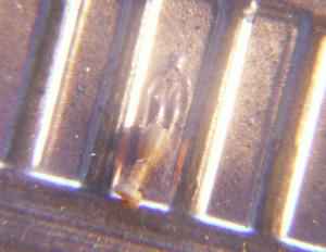 The goblet is about 0.3 mm (0.012″) diameter. At this scale I don’t so much worry about sneezing and losing it on the floor, but more about accidentally breathing it in….