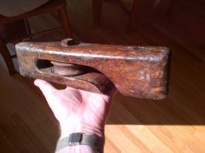 How it came to be in my possession is a story of high adventure, curiosity-awakening mulling and generosity by donor. Time had clearly worn grooves in its memory while removing the sheen of a once pure wood. Perhaps it was a piece of rescued flotsam, after the sea water had stripped it down.
