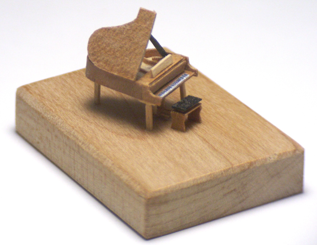 At the 1:144 microminiature scale, the piano is about 10 mm wide (just over 3/8″) wide, which is about 5′, or 150 cm in real life. Time for some Beethoven I think.