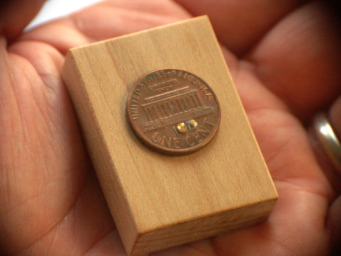 Penny breakfast: two eggs sunny, side up, and a rasher of bacon with not even a calorie between them, gracing the hand-turned plate (birch) and waiting to be eaten with the metal-forged knife and spoon. There’s also a birch-turned mug with carved handle for the tea or coffee, all in 1:144-scale microminiature.